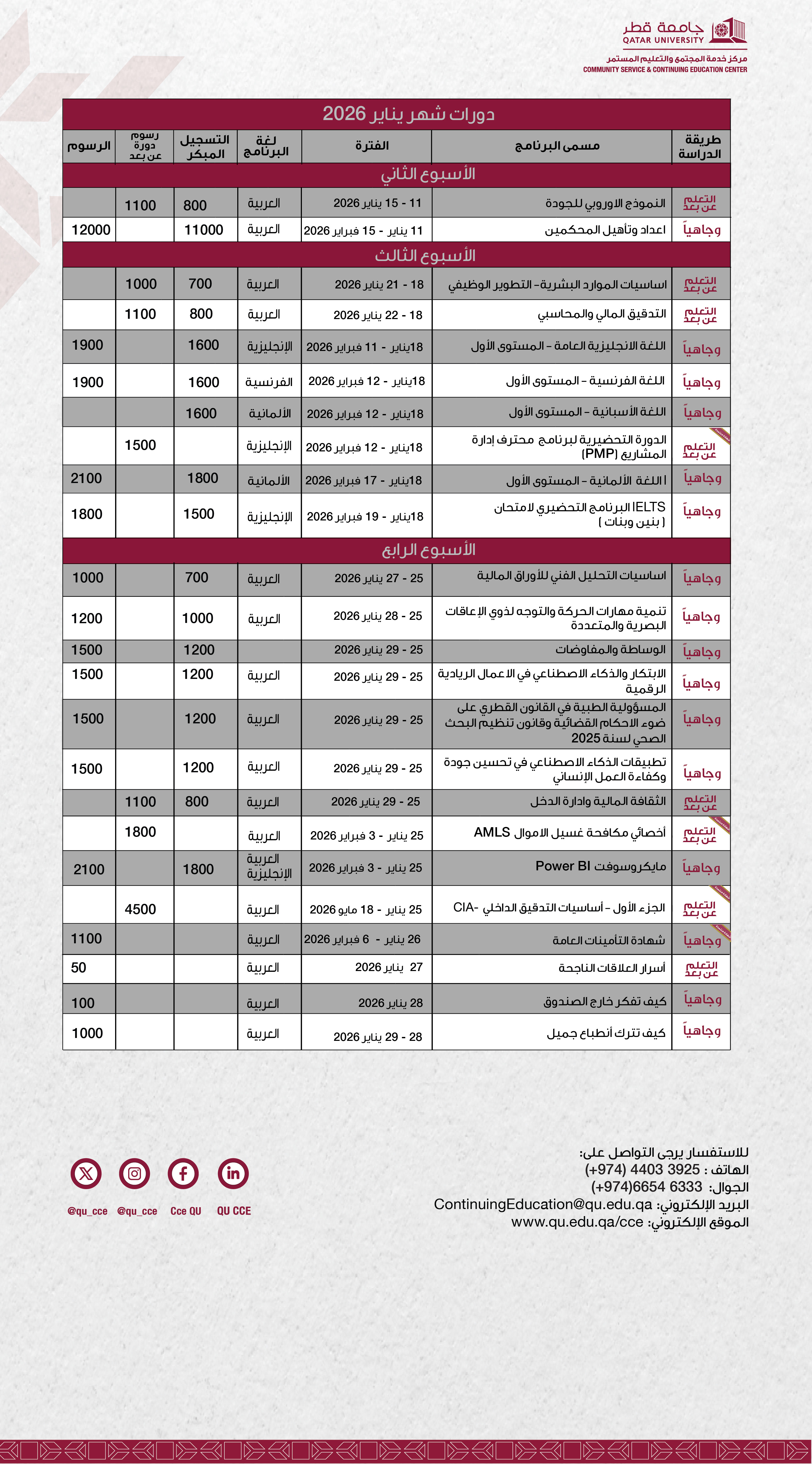 الدورات القادمة