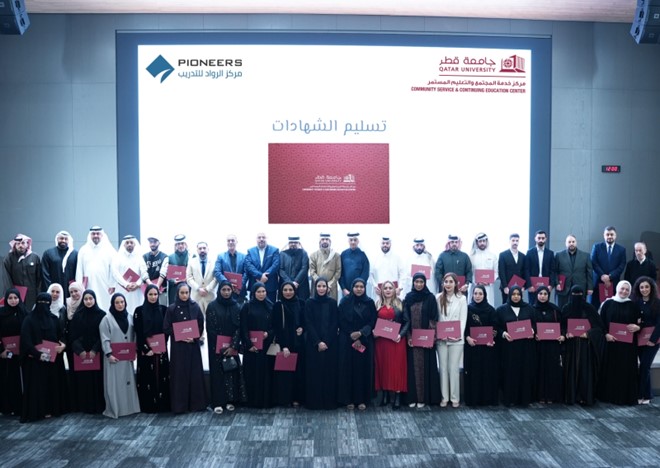 تخريج الدفعة الثالثة من طلبة الدبلومات المهنية في جامعة قطر – مركز خدمة المجتمع والتعليم المستمر بالشراكة مع مركز الرواد للتدريب