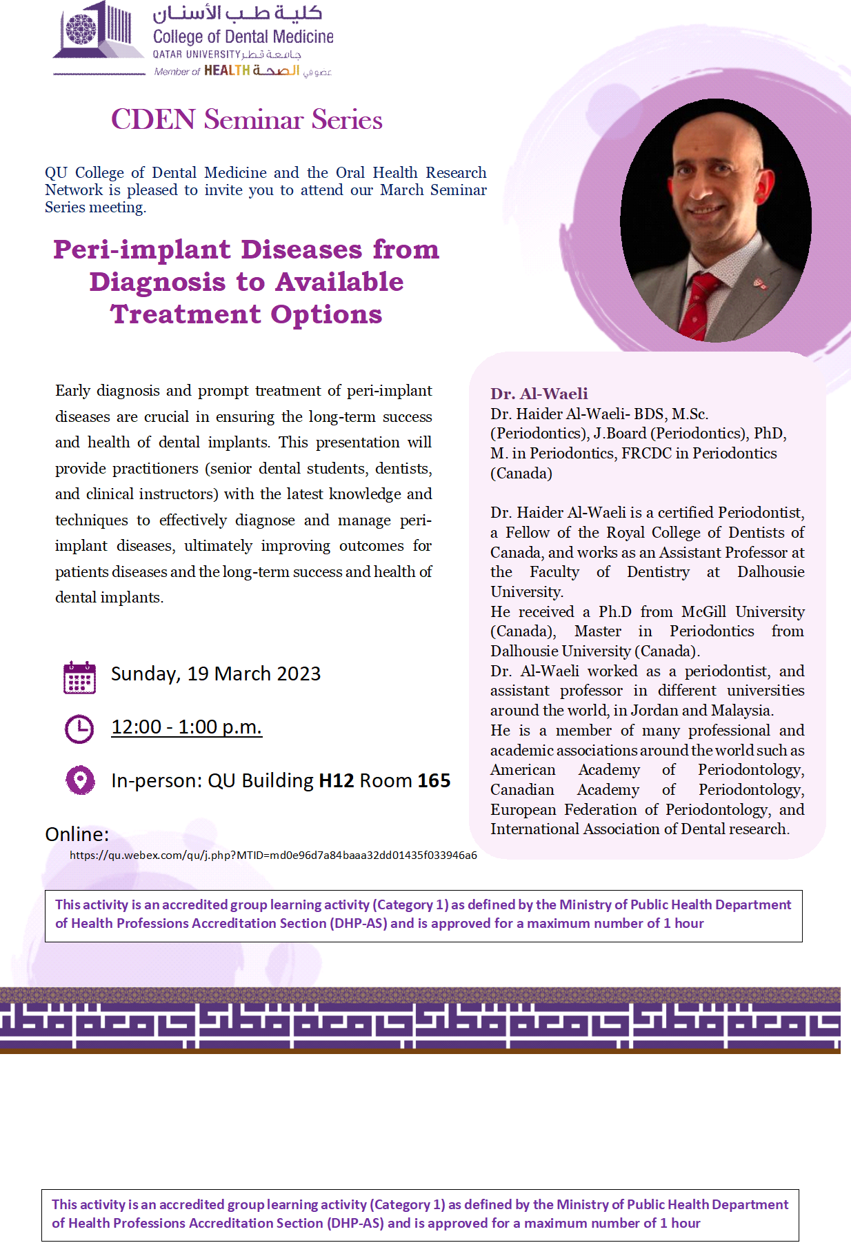 | 19 March 2023 | Dr. Raidan Ba-Hattab | Dr. Haider Al-Waeli |