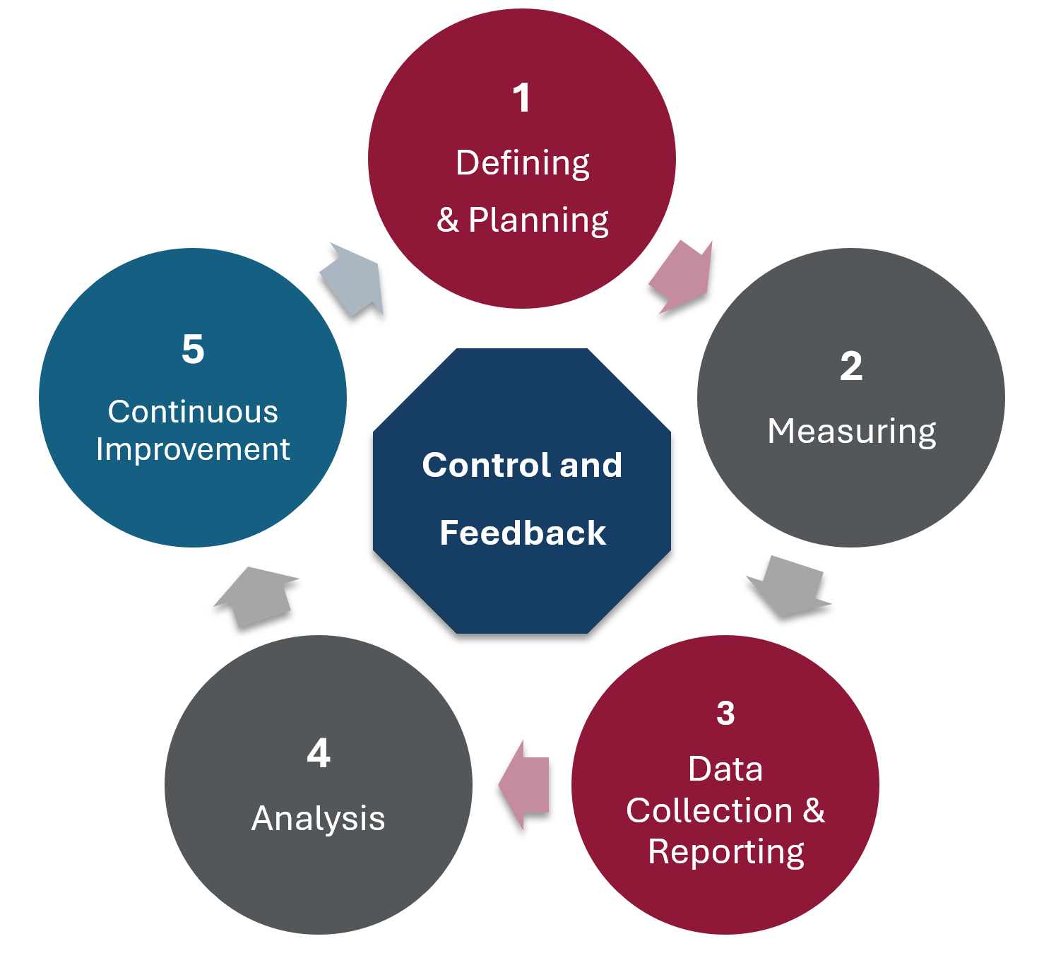 At QU Health, the PLOA Process is dynamic and continuous, tailored to QU Health and the university’s specific needs and structured around the Six Sigma DMAIC methodology. It includes five key phases: Defining & Planning, Measuring, Data Collection & Reporting, Analyzing, Improving, and a continuous Control & Feedback loop. This adaptive approach ensures a responsive and inclusive assessment that focuses on actively engaging faculty and staff in enhancing program quality. Through emphasizing student attainment of defined learning outcomes, the process departs from traditional metrics like grades, instead it uses direct and indirect methods for a holistic evaluation of program effectiveness.
