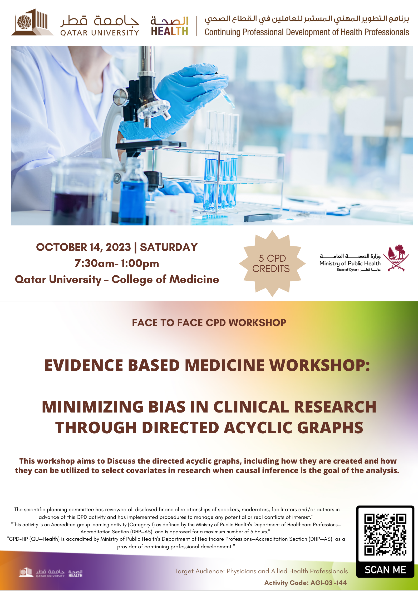 Face-to-face Workshop. Evidence Based Medicine Workshop: bias in clinical research through directed acyclic graphs |