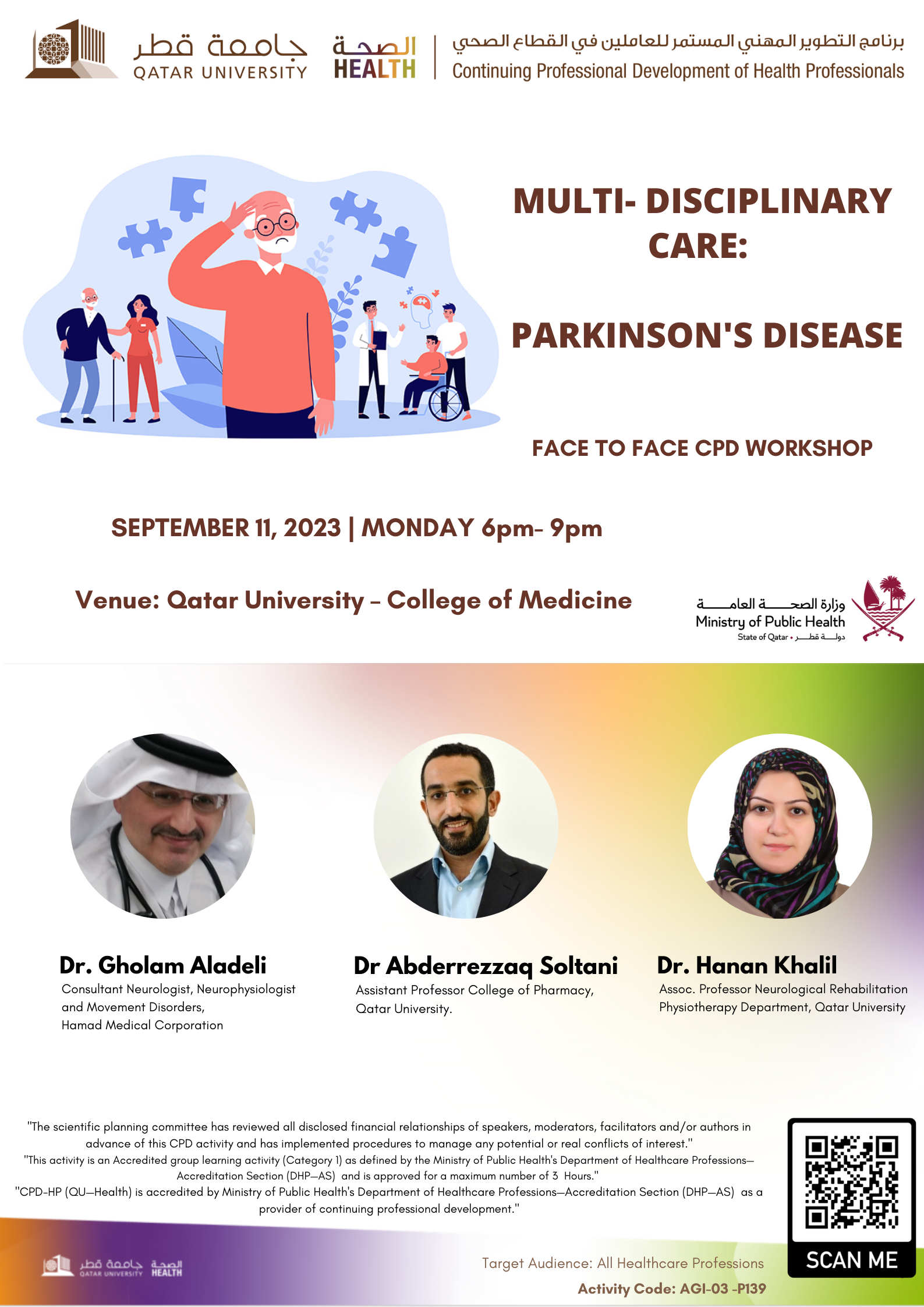 Face-to-face Workshop Multi-disciplinary care in the management of Parkinson's Disease