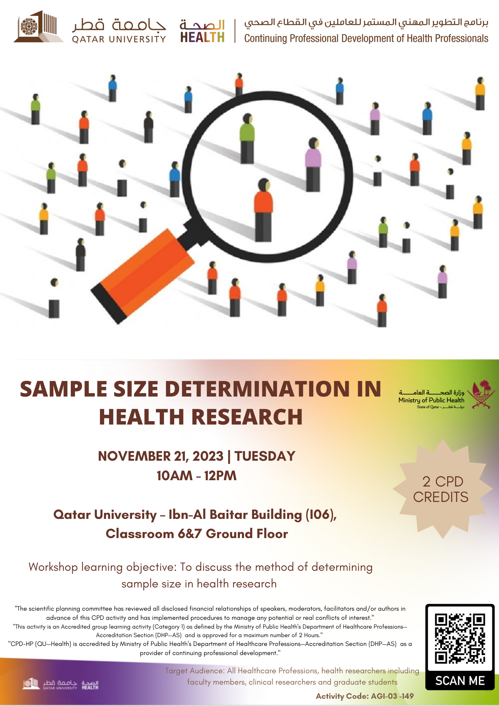 Venue: Qatar University, Ibn-Al Baitar Building (I06), Classroom 6 & 7 Ground Floor
