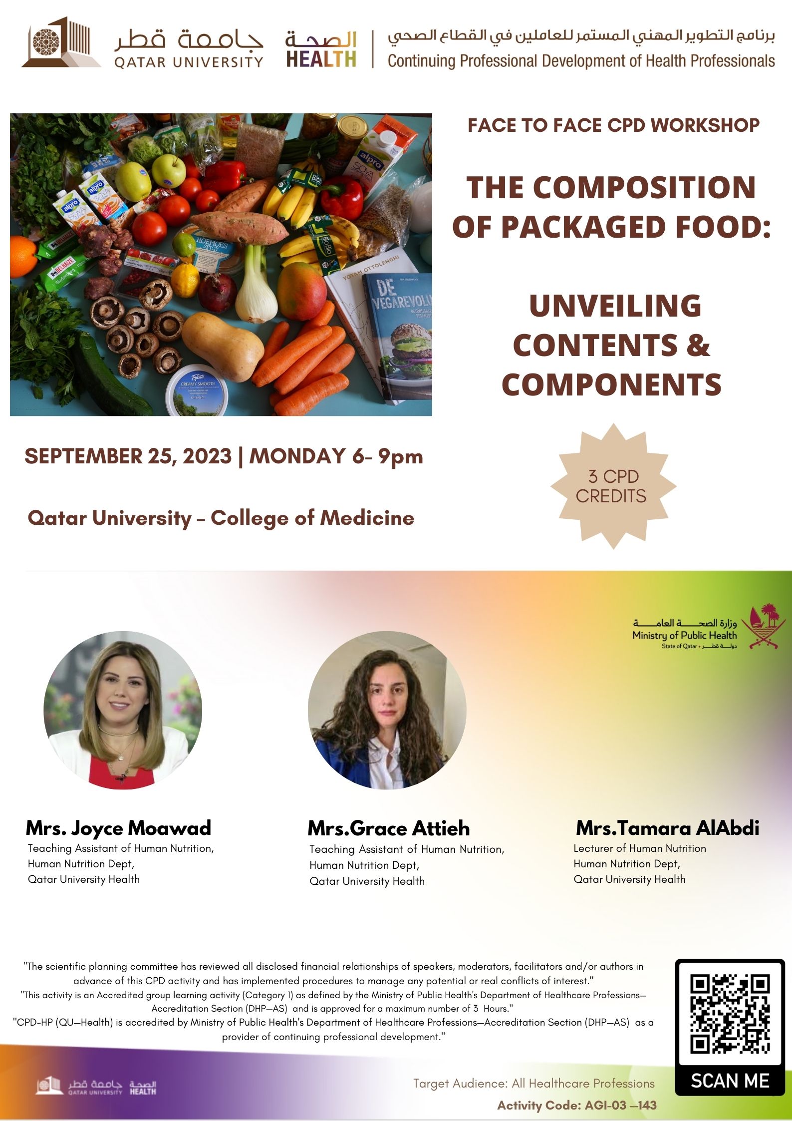 Face-to-face Workshop: The Composition of Packaged Food: Unveiling Contents & Components
