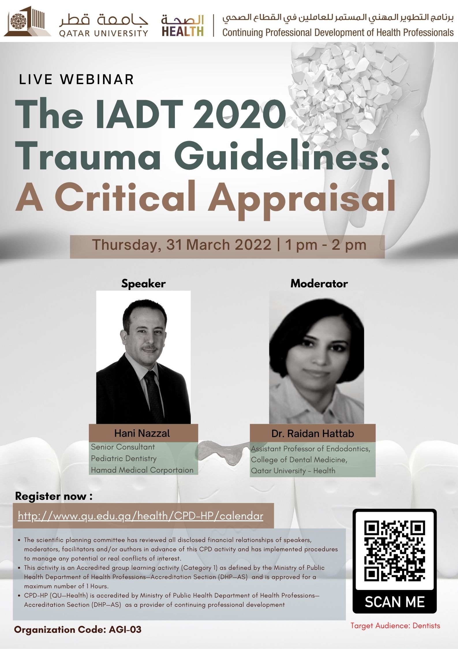 The IADT 2020 Trauma Guidelines: A Critical AppraisalThursday, Mar 31, 2022 1:00 pm | (UTC+03:00) Kuwait, RiyadhWebinar number: