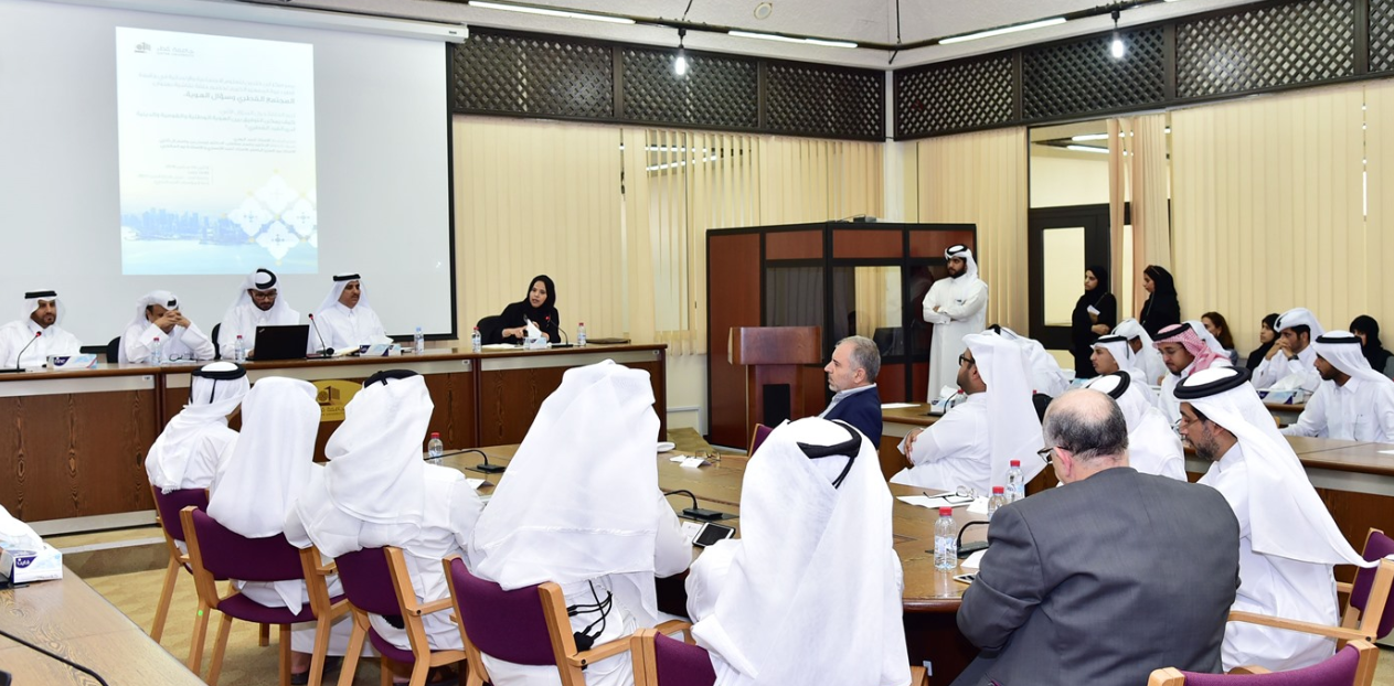 وقد حضر الندوة سعادة السيد صلاح بن غانم العلي وزير الثقافة والرياضة، وسعادة د. حسن بن راشد الدرهم رئيس جامعة قطر، وأعضاء الهيئة التدريسية، والطلبة.