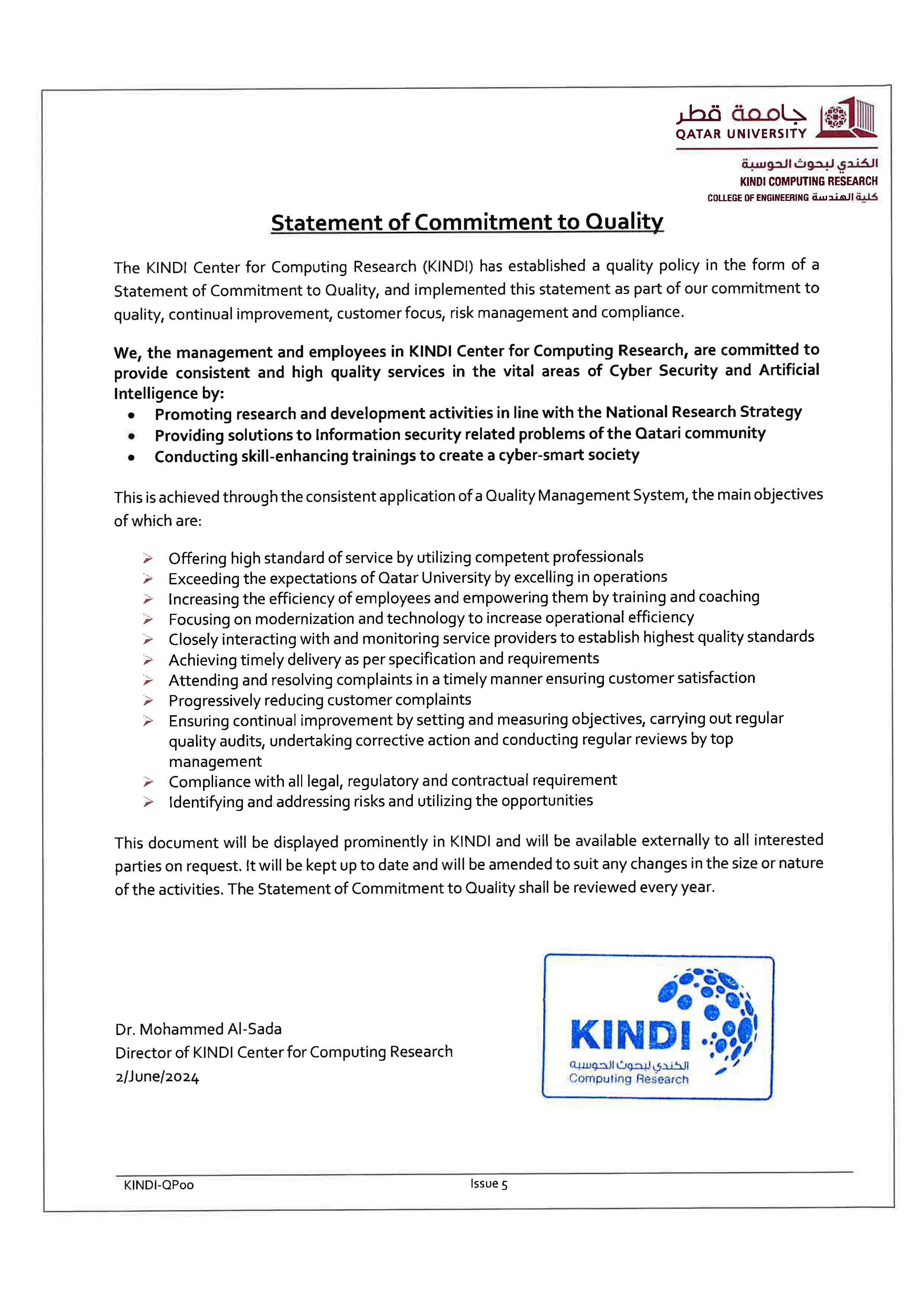Statement of Commitment to Quality