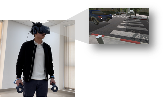 The main application of the VR system is to anlayze pedestrian behaviors and vehicle-pedestrian conflicts. The system is capable of collecting a detailed trajectory data such as, positioning/movement, walking speed, acceleration as well as the eye tracking information such as, frequency and time period of eye-fixations for certian events and road environment.