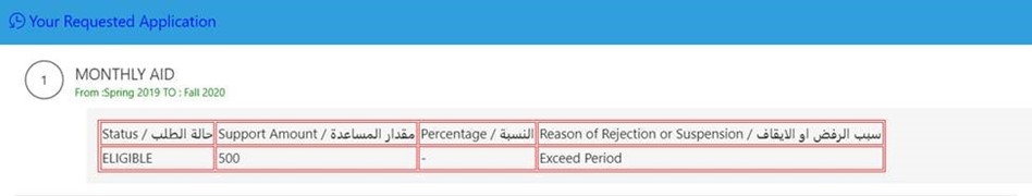 - You will be directed to the main dashboard that contains all financial aid application related information as shown in the below picture as an example: