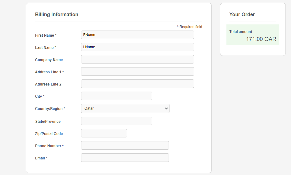 2. Enter your information in the fields Address Line 1, City, Phone Number and E-mail