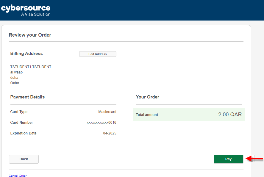 “Please click here to complete your payment” link to return to Banner Self-Service