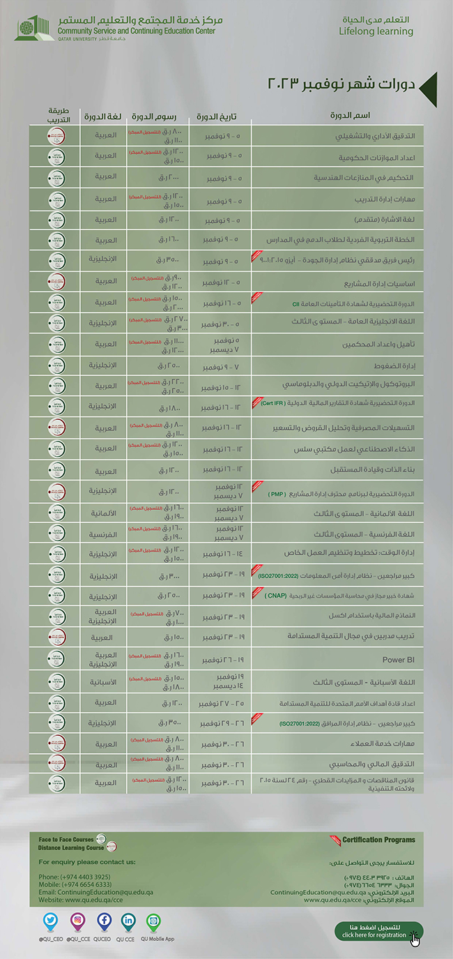 الدورات القادمة